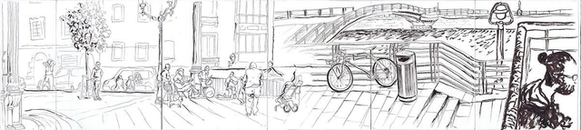 Dibujo plaza Unamuno y Muelle Martzana (Bilbao)